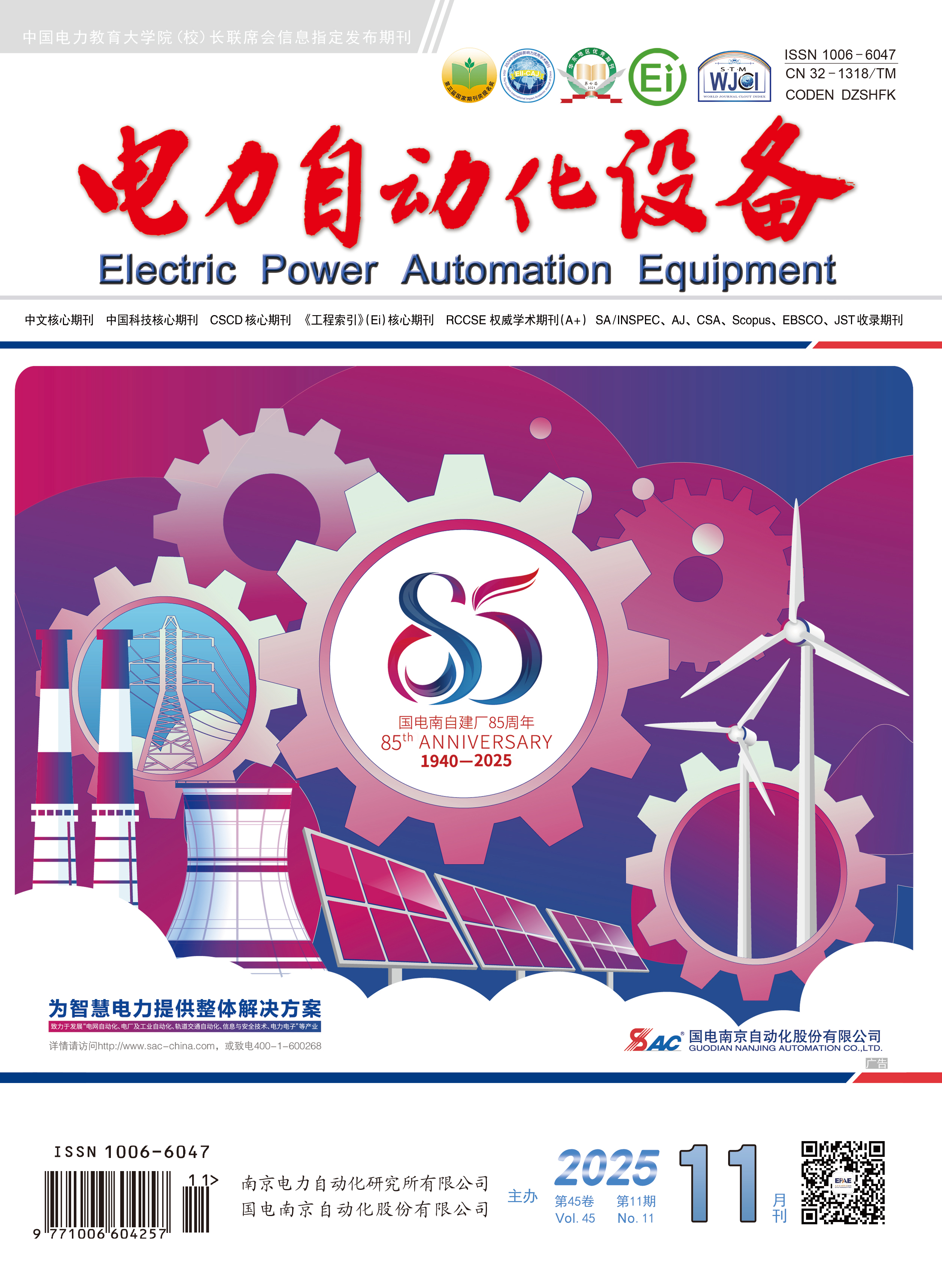 根据中国知网和清华大学图书馆联合发布的《中国学术期刊国际引证年报》(2025年版),《电力自动化设备》期刊入选“2025中国国际影响力优秀学术期刊”。